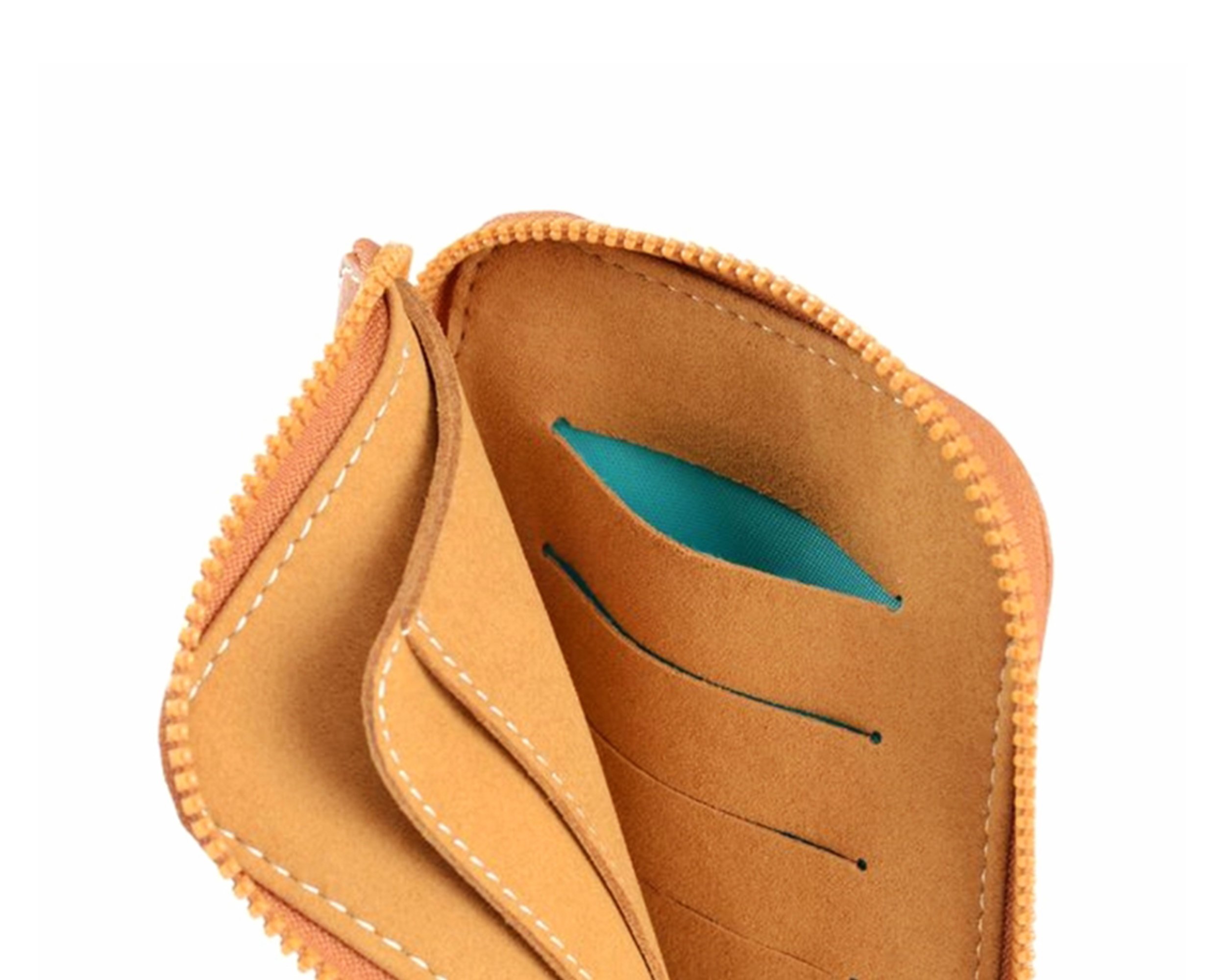 Dedicated space for the iPhone and storage for cards, bills, and other essentials lined with genuine soft suede. Precise stitching adds a hint of color to the wallet.
