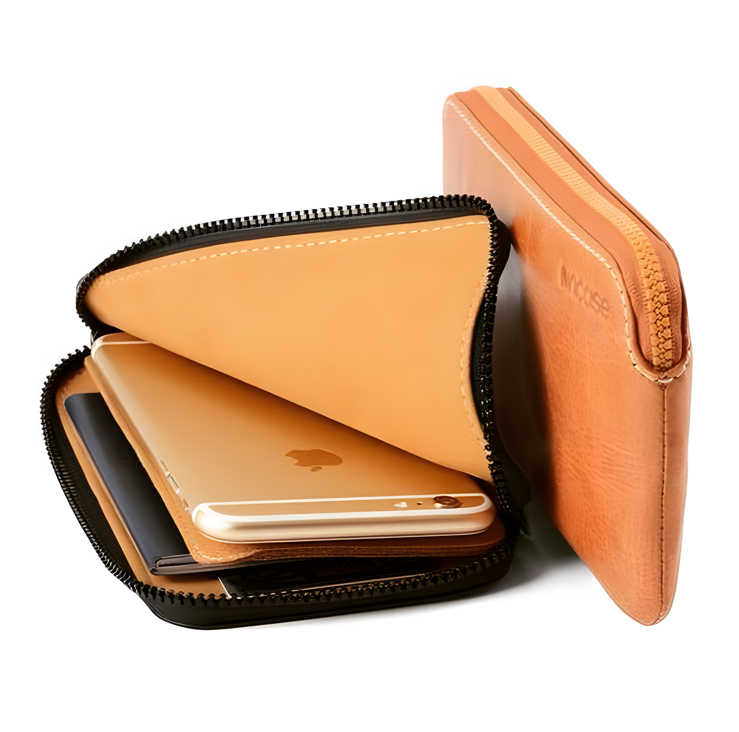 Hand crafted from full grain American leather, the Incase iPhone Leather Zip Wallet combines premium protection with everyday utility. It features a dedicated compartment for your iPhone along with organized slots for cards, bills, and essentials, all lined in soft microsuede for a refined touch. Precise contrast stitching highlights the craftsmanship, while the slim zip around form allows it to slip easily into your pocket for convenient carrying.