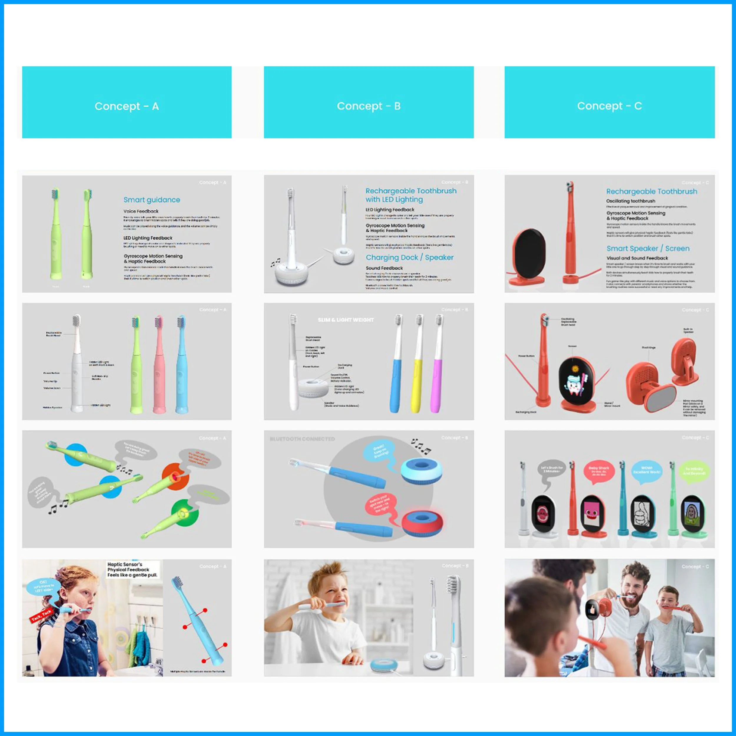 By distilling these findings into opportunity areas, the team was able to define clear design principles that guided concept ideation. The FFE process ensured the Firefly Play Action toothbrush wasn’t just another kids’ product, but a fun, behavior-changing tool that combines oral care with interactive play.