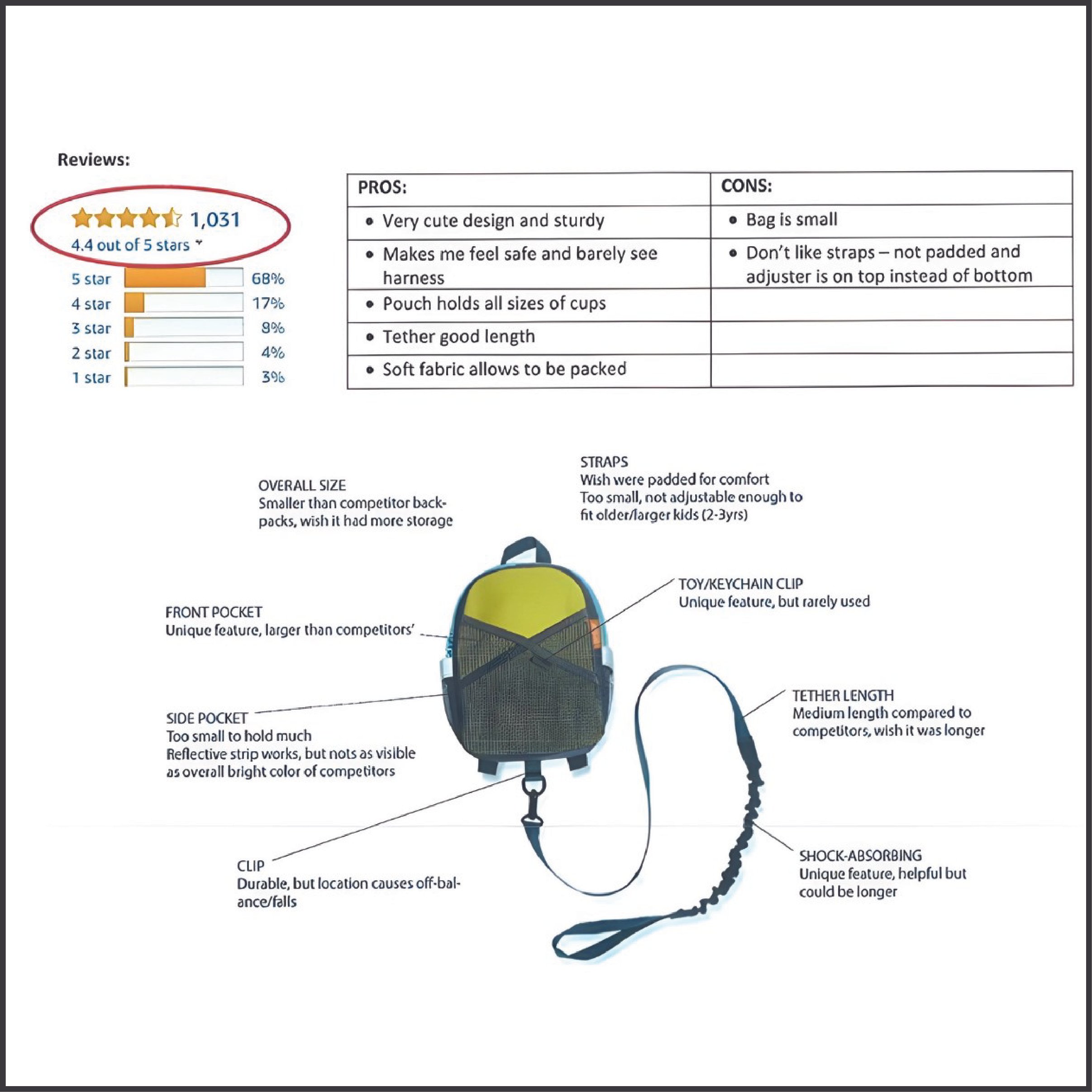 Studied competitors’ Pros and Cons by understanding what customers are saying. Purchased samples for use case study, material application and overall qualities.