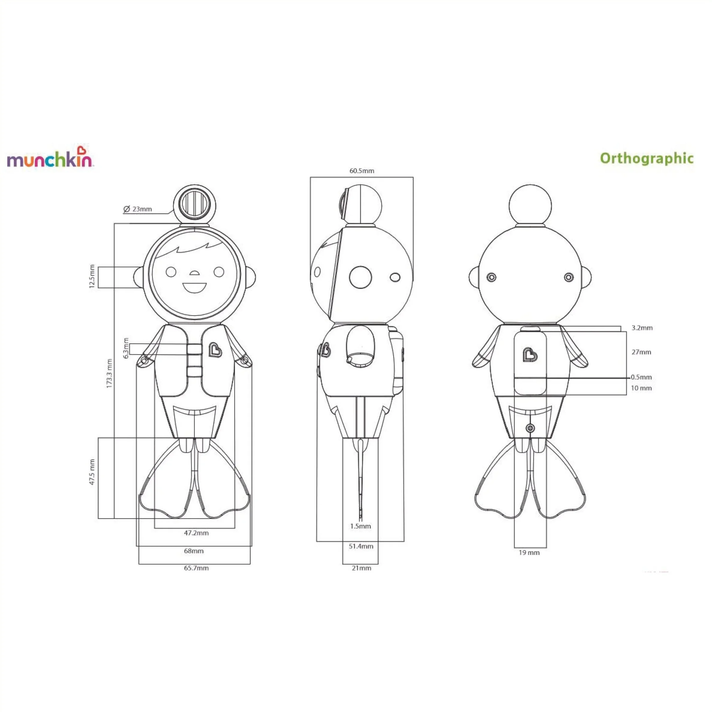 The Munchkin Scuba Swimming Bath Toy is made for underwater fun with a fin that flaps and makes this little diver swim around the tub. The attached head lamp pull cord is easy for little hands to operate and teaches your toddler valuable skills like hand and eye coordination and action and reaction. Time to make a splash.