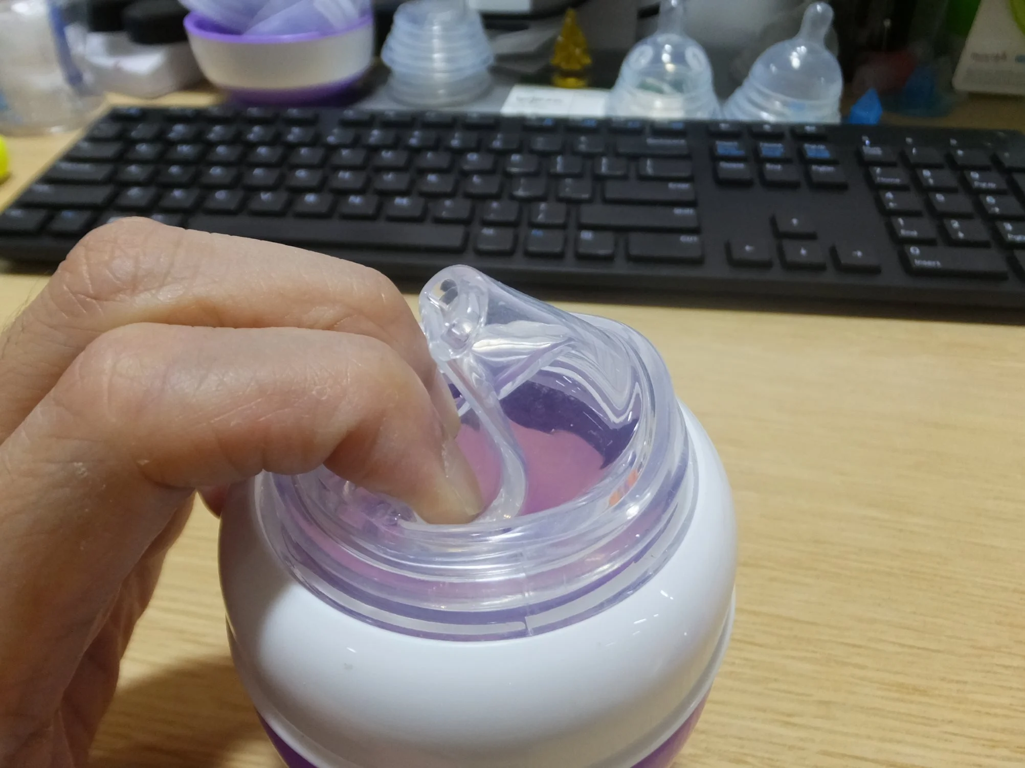 Silicone Spout easily collapsed when the air is drown out of the bottle, unable to provide flow of liquid when babies are suckle on it. Understand what is causing this issue and improve the feature.