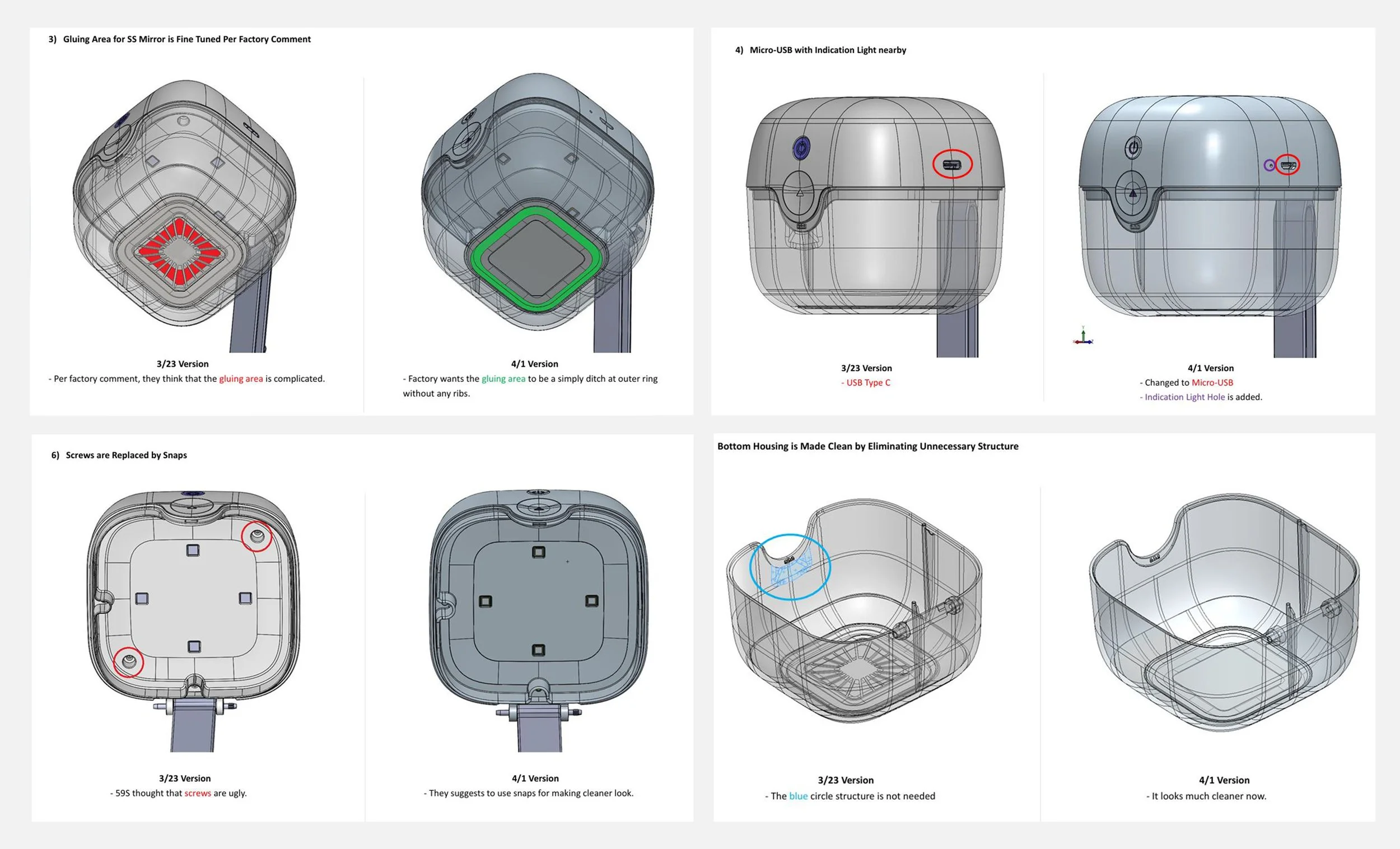 Following initial CAD handoff, worked closely with engineering to simplify internal structure and reduce unnecessary mechanical complexity.