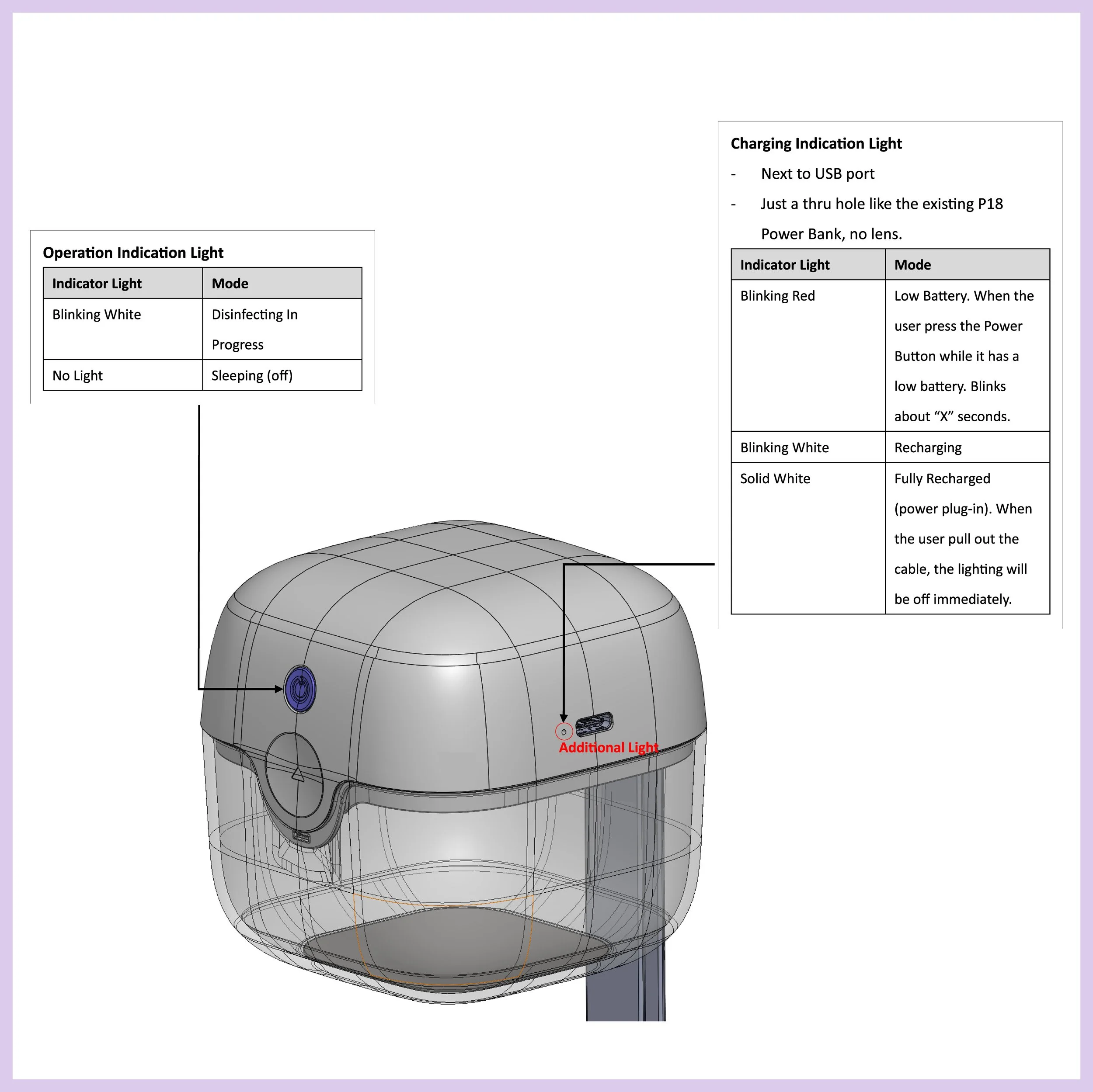 Developed an LED user experience (UX) map outlining sequences and animations to convey power status, charging mode, low battery, and other pertinent information.